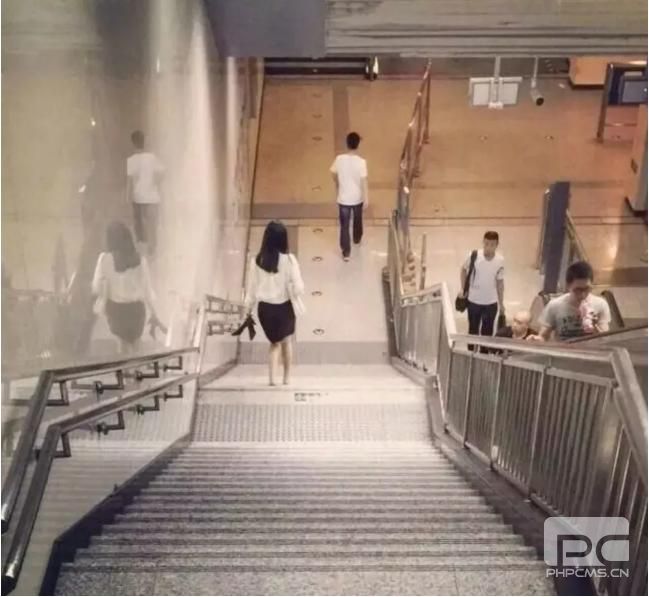 就像這個加班到很晚的姑娘,腳太累了,提著高跟鞋光腳走下樓梯,去趕最后一班地鐵。